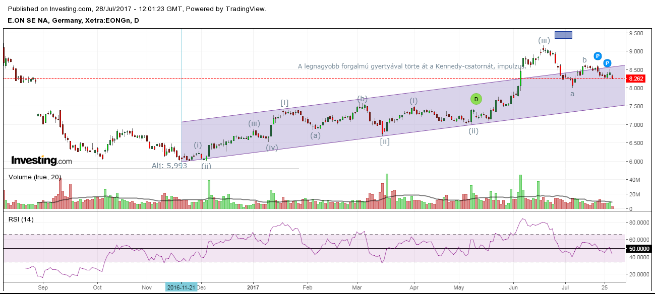 Ha lemegy 8 alá, veszek még. Ha nem megy le, mert nem impulzus volt a nyolcig lejövő hullám, hanem egy komplett korrekció, akkor csak 9,5-nél eladom a maradékot, és örülök, mert ez az Eon végre bejött rendesen.